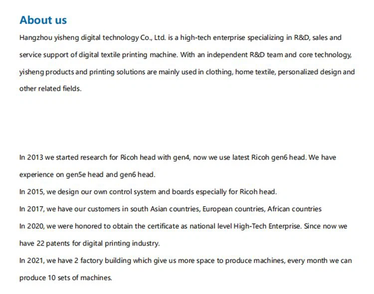 Gen5e hoved: 5-10-15pl, det har mindre væskedråbestørrelse, det er mere velegnet til reaktivt blæk og surt blæk. Patronhastigheden vil være hurtigere med gen6 hoved. Så produktionen bliver mere.